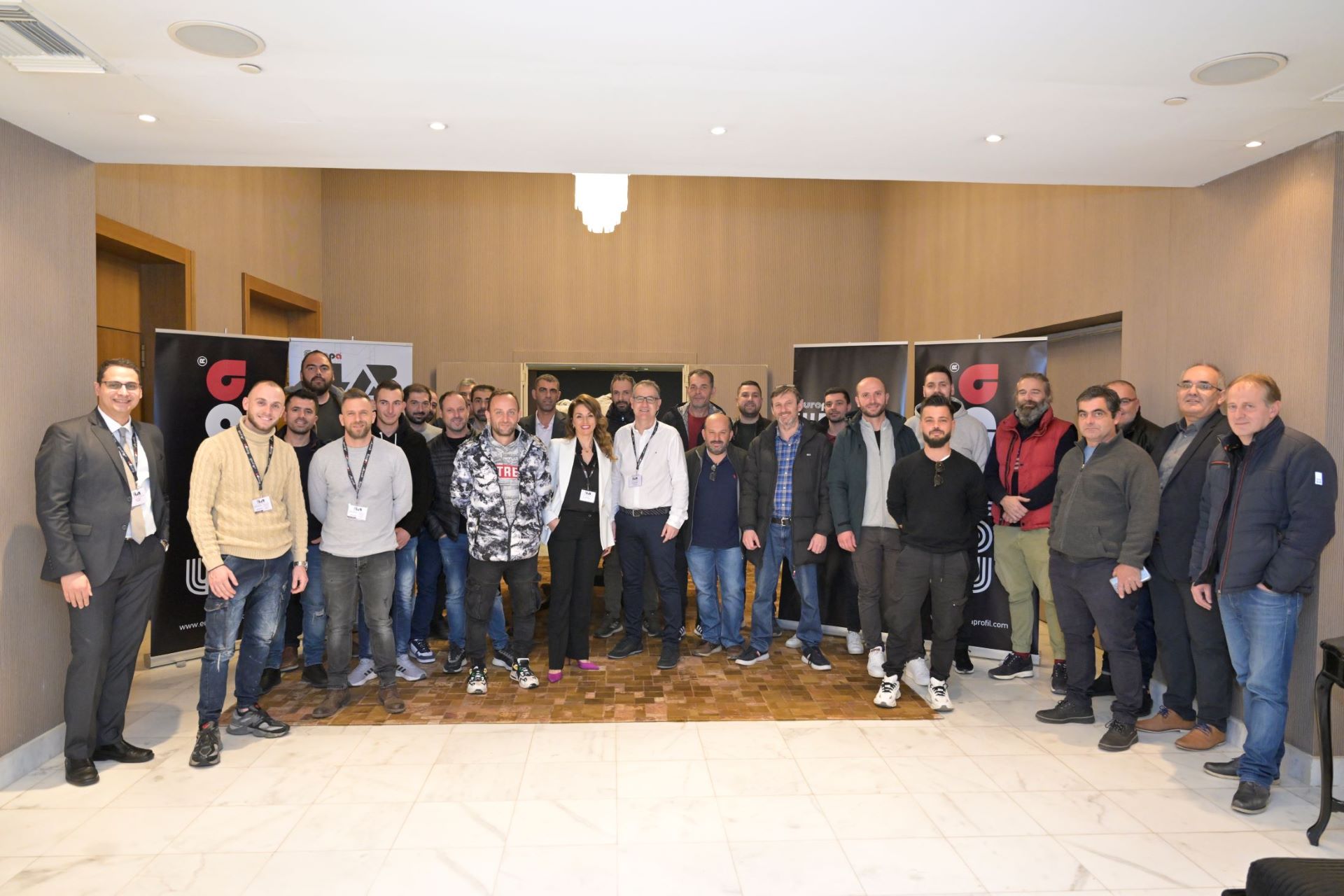 Σύγχρονη μονάδα διακοσμητικής βαφής τύπου ξύλου με τέσσερις (4) γραμμές. Οι δύο γραμμές είναι για προφίλ και οι άλλες δύο για πάνελ αλουμινίου.