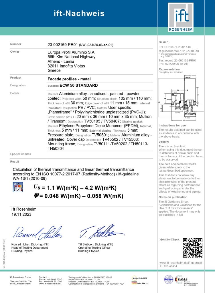 ΘΕΡΜΟΜΟΝΩΣΗ | U0 = 1.1 W/(m²K) – 4.2 W/(m²K) |