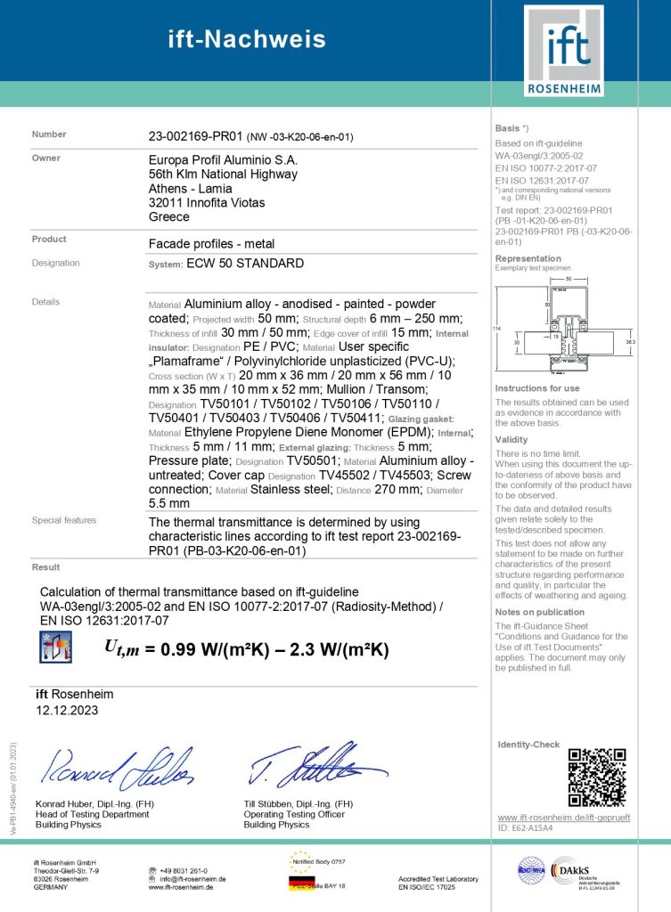 Ut,m = 0.99 W/(m²K) – 2.3 W/(m²K) |